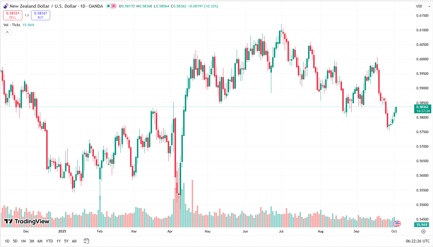 Market commentators point out that broader market sentiment also tilts against the greenback, with investors relatively unconcerned about a partial US government shutdown and equity markets maintaining a positive tone. This backdrop has favoured commodity-linked currencies such as the New Zealand dollar. Still, rising expectations that the Reserve Bank of New Zealand (RBNZ) could deliver additional rate cuts limit upside potential, creating a tug-of-war between short-term dollar weakness and medium-term Kiwi policy risks.