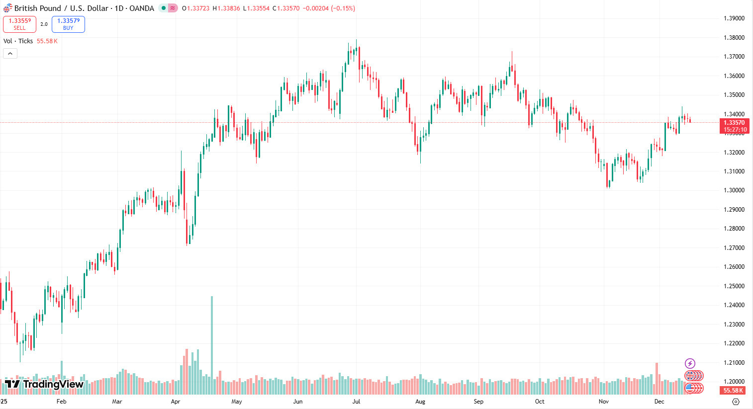 GBP/USD is stable above the mid-1.3300s in early Tuesday trading, staying close to 1.3365. Markets are cautious as they wait for important UK labour data and the Bank of England’s policy decision later this week.