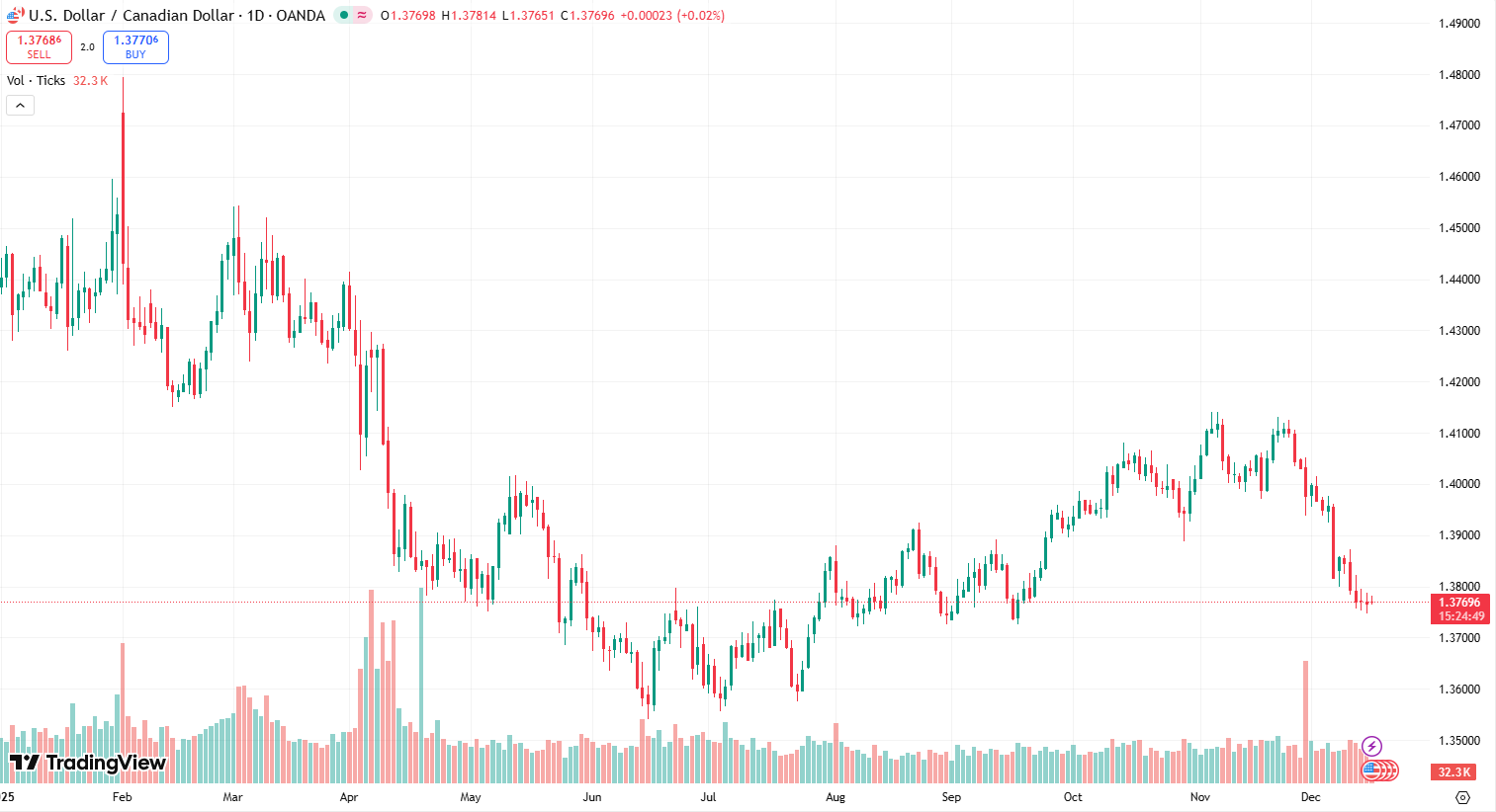 In Canada, the loonie stabilized following the release of November inflation data. Headline CPI increased 2.2% year-over-year, below expectations, while core inflation remained near 2.9%. The Bank of Canada considers its current policy appropriate, indicating little urgency for further rate changes.