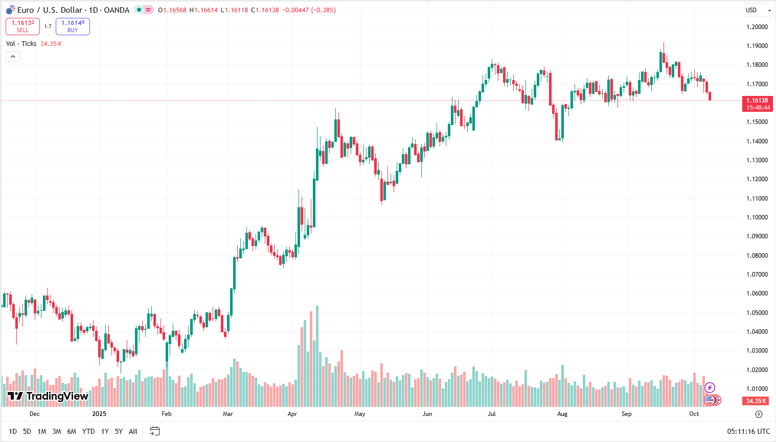 The EUR/USD pair extended its decline and traded near 1.1620 in Wednesday’s Asian session, as political uncertainty in France weighed on the Euro. The common belief is that the joint currency was placed under greater strain after the French Prime Minister Sebastien Lecornu resigned on Monday, casting doubt on financial turmoil and possible delays to the national 2026 budget bill. Market commentators point out that the political vacuum has increased investor uncertainty over Eurozone assets, leaving the Euro weak relative to the US dollar before key US economic news later in the day.